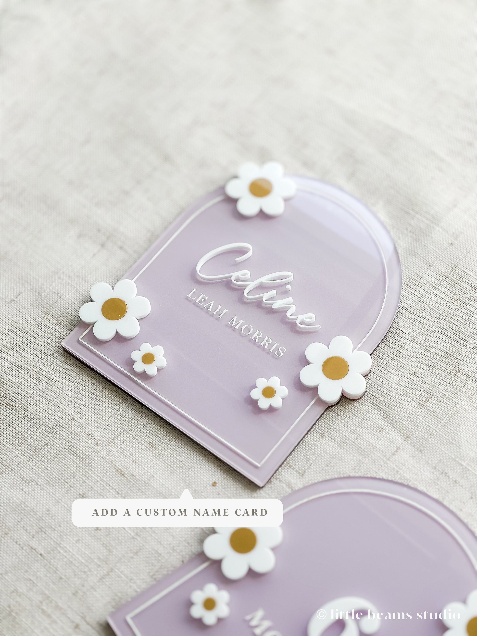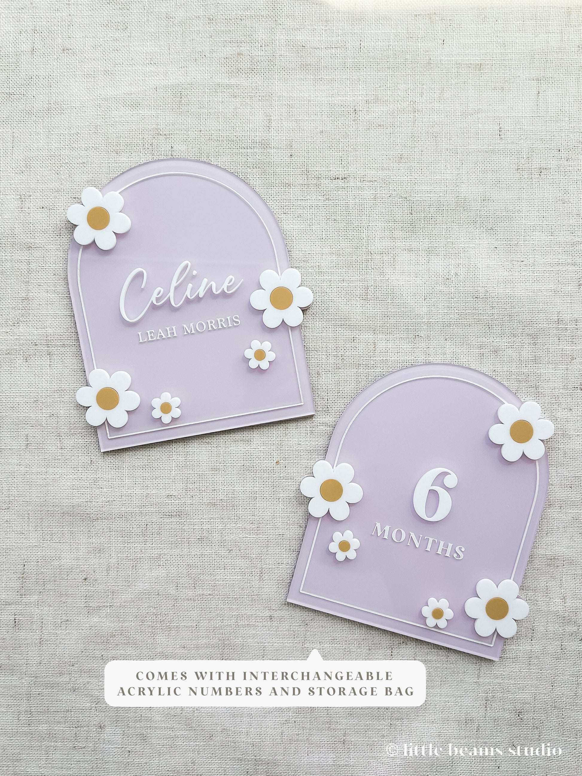Capture your baby's special moments with our signature Acrylic Daisy Milestone Card—the perfect photo prop to record those big milestones! Each milestone card is crafted from premium quality acrylic and double sided laser engraved. You can also pair the milestone card with a personalized baby name card, the perfect way to announce your precious newborn's arrival to all. Whether as a baby shower gift, a unique baby announcement for hospital photos, or a cherished baby keepsake, these personalized signs make each moment unforgettable.