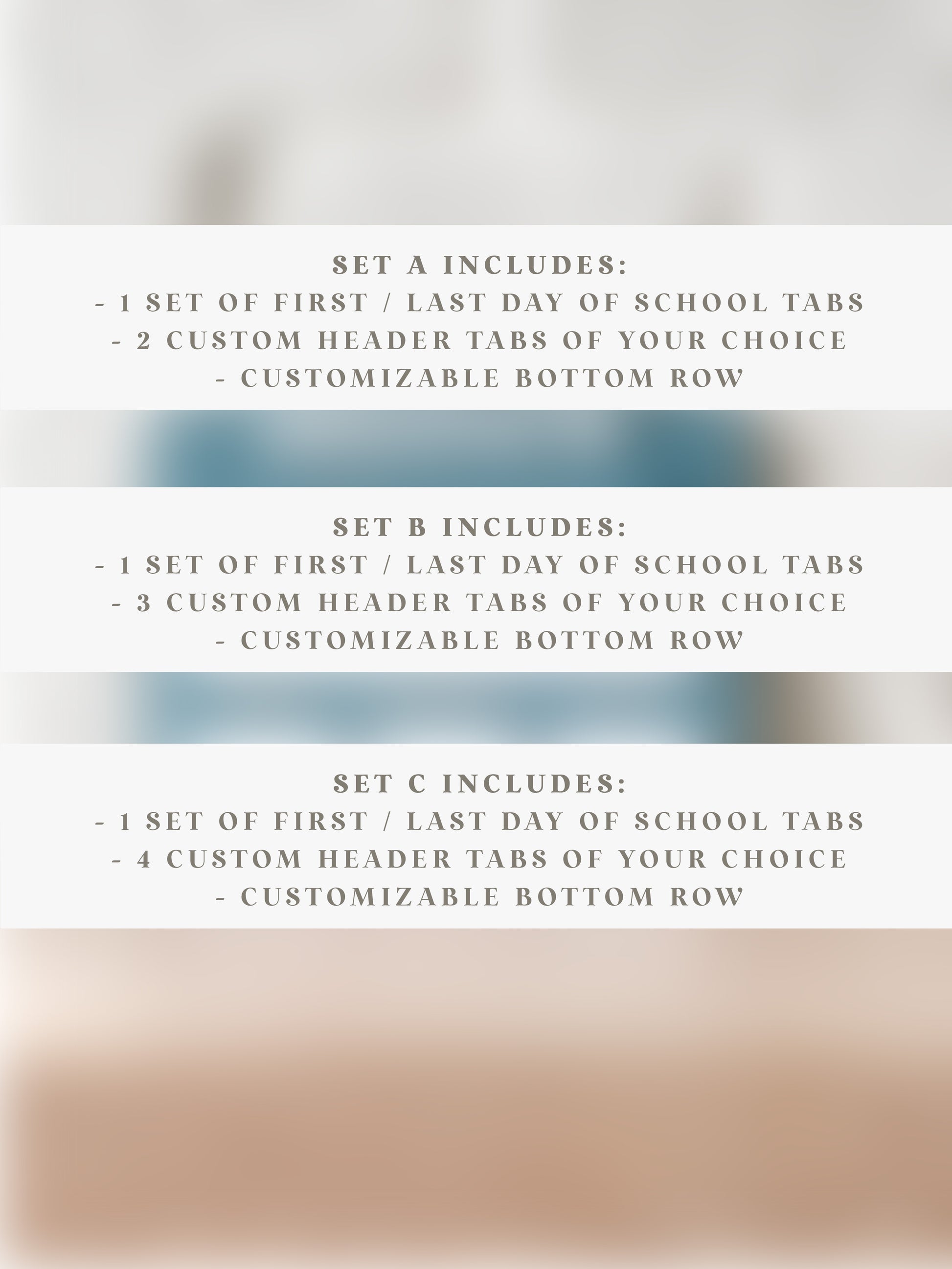 - 1 set of First / Last Day of School tabs